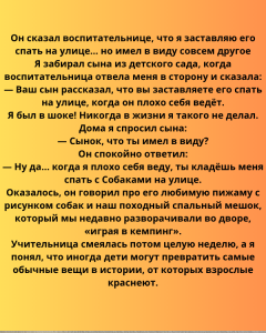 — Ваш сын рассказал, что вы заставляете его спать на улице, когда он плохо себя ведёт.