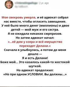 я никогда не ожидала, что в её завещании именно я окажусь наследницей всего — дома, сбережений и даже озёрной виллы.