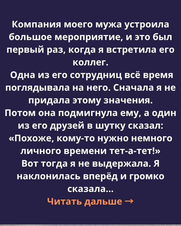 Как я справилась с неловким моментом на рабочем мероприятии мужа Компания моего мужа устроила большое событие, и это был первый раз, когда я встретила его коллег. Одна из его сотрудниц